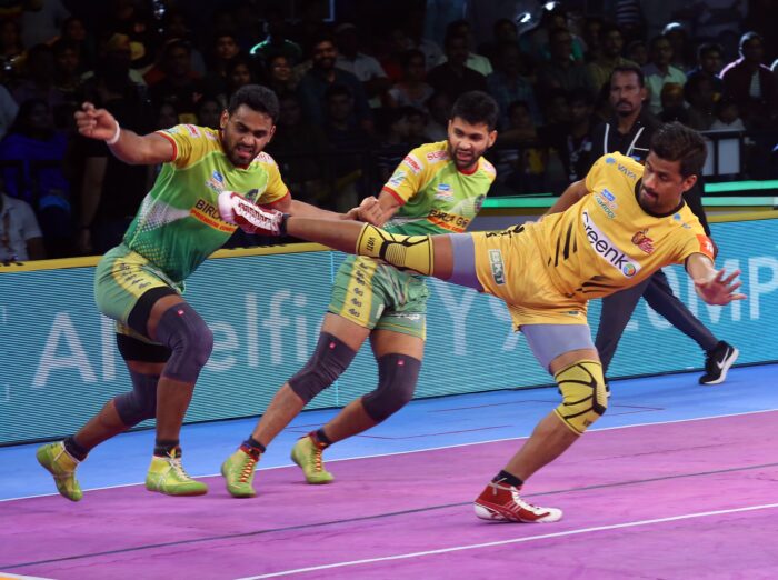Patna Pirates inflicted an all out in the 26th minute as they trailed 24-30 and looked to mount a comeback. But Rahul Chaudhari and Nilesh Salunke kept picking raid points at regular intervals as Telugu Titans led 36-28 after 34 minutes. With less than five minutes to go Patna Pirates trailed by seven points and the Titans were looking on course to a victory. Patna’s hopes of a comeback were looking dim as Pardeep was sent to the bench in the 36th minute.